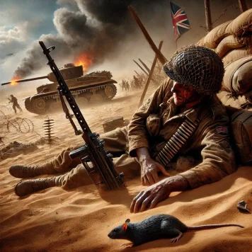 Ich erinnere mich, wie wir hierhergekommen sind. Voller Elan und Entschlossenheit, diesen Deutschen zu zeigen, wie heiß es in Afrika ist. Aber die Realität ist grausam. Die Hitze hier ist unglaublich, Wasser ist knapp und uns geht das Essen aus. Und dazu noch der ständige Beschuss und die Luftangriffe.